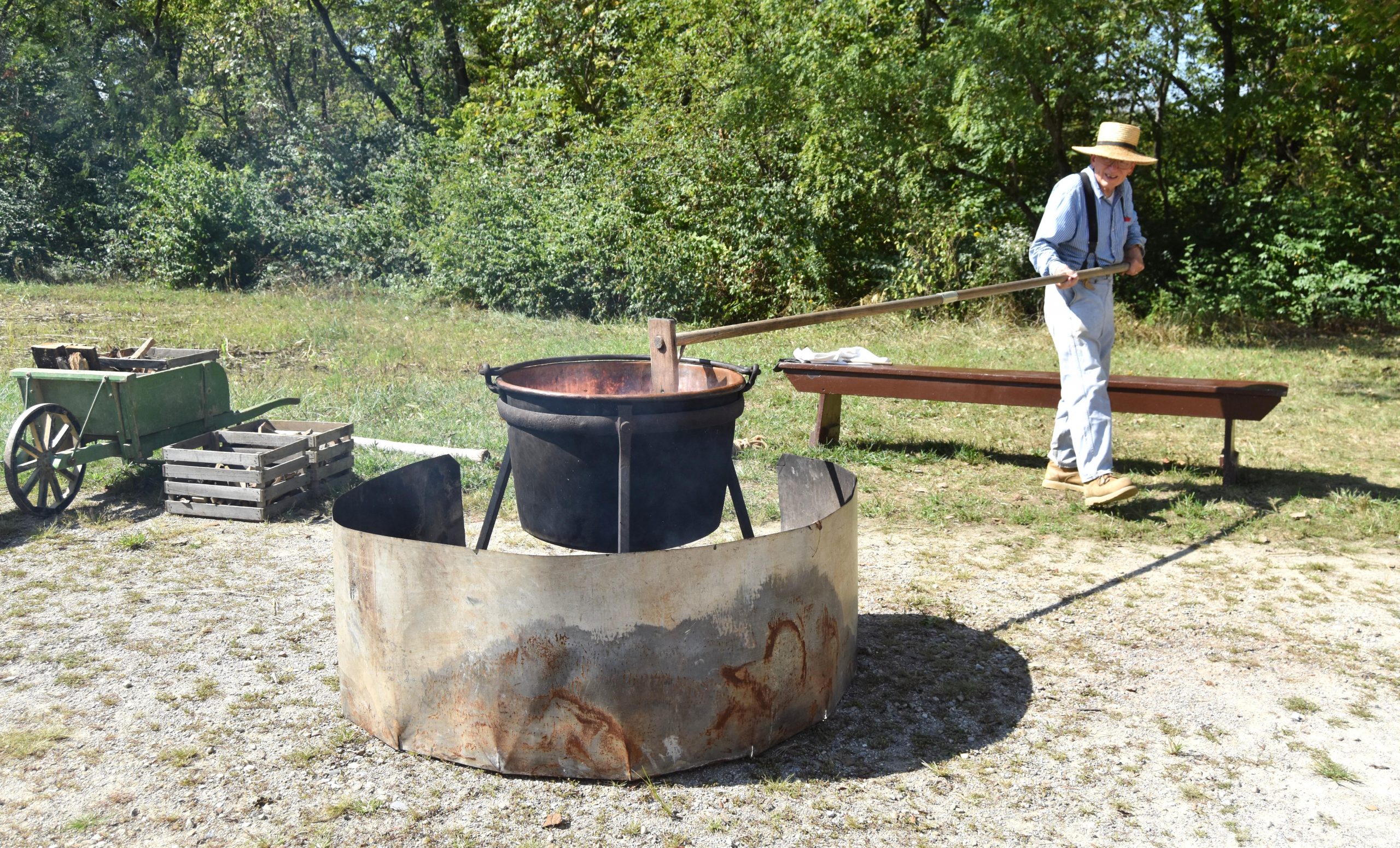 Visitors could sample apples with apple butter and apple cider. Many enjoyed watching volunteers stir the applesauce and press apples for cider.
