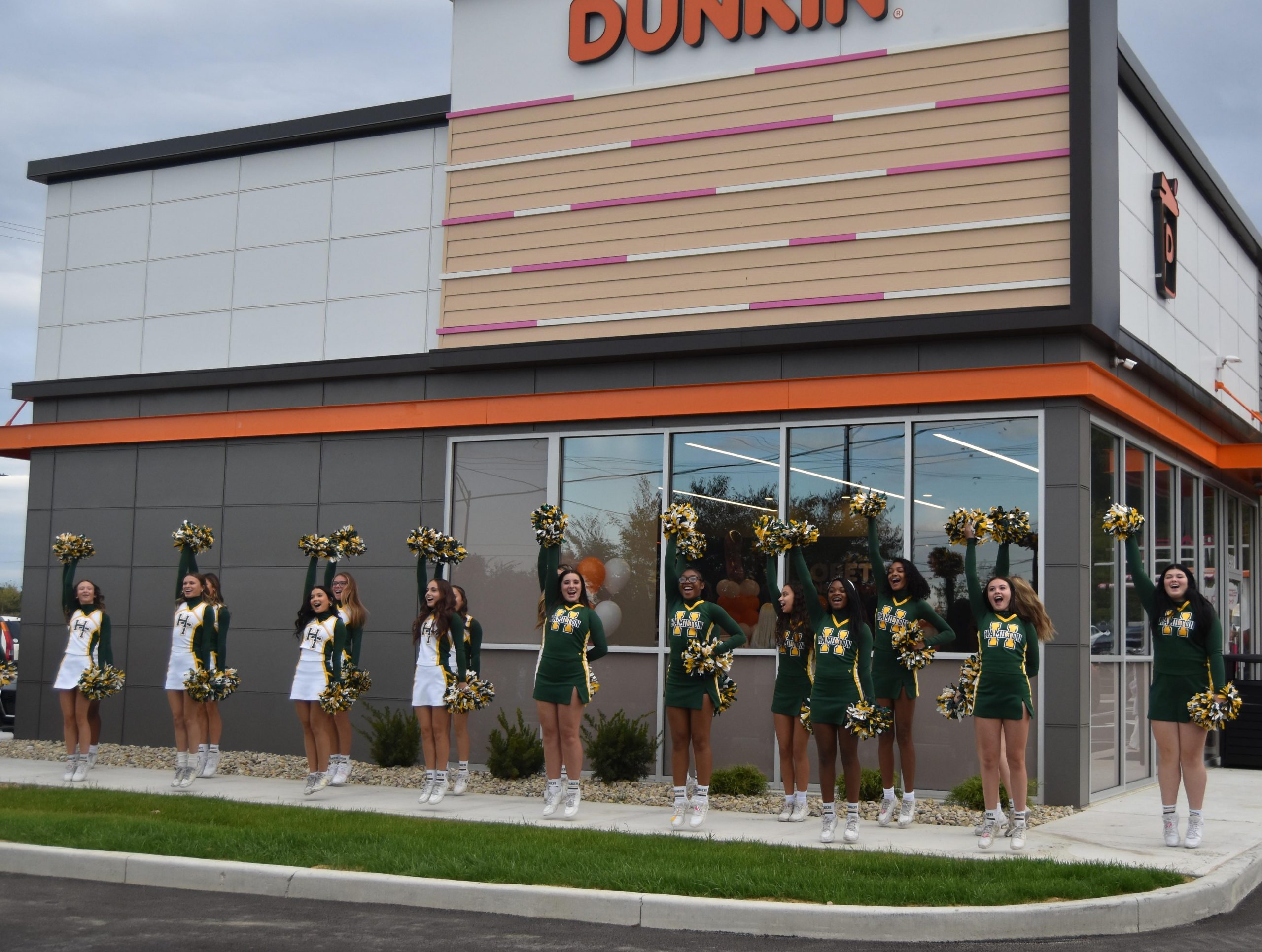 The actual event began at 9 a.m. with the Hamilton Township High School cheerleaders leading the crowd. Sprinkles, the donut mascot, came out to meet all the fans of the new location.